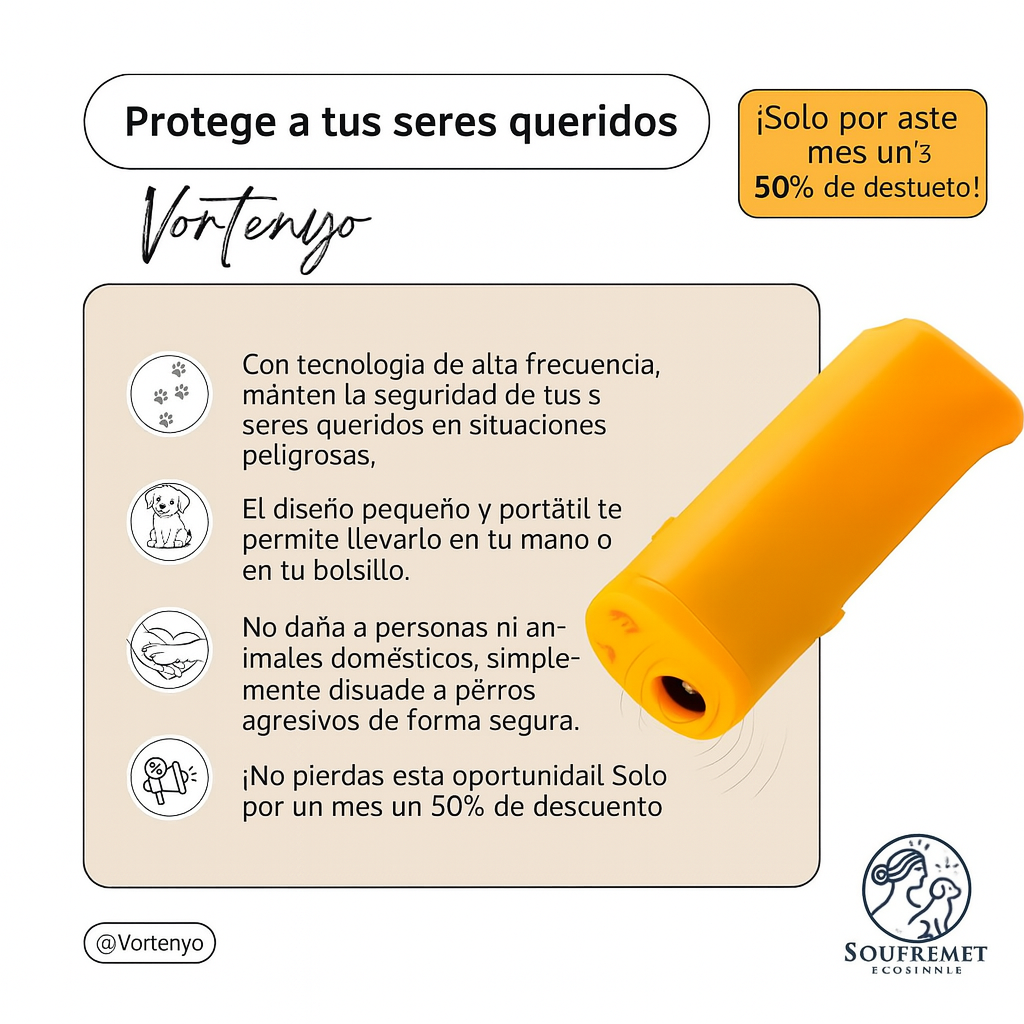¡Se acabó la preocupación al caminar por la calle! El Repelente ultrasónico para perros protege a usted y a sus seres queridos de los perros agresivos. Emite frecuencias inaudibles para los humanos pero perceptibles por los perros, alejándolos sin causarles daño.