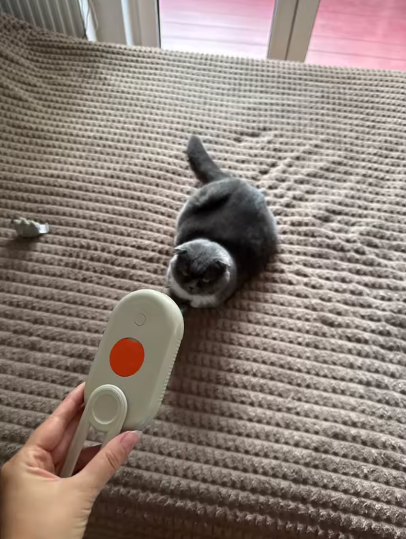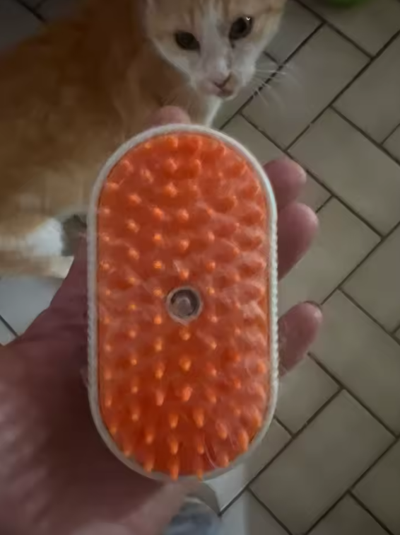 Meine Katzen lieben dieses Produkt. Am Anfang verwendet man nur die Bürste, damit sie sich daran gewöhnen, und danach nutzt man den Dampf. Der Dampf kann sie anfangs erschrecken, aber mit der Zeit passen sie sich daran an. Insgesamt ist es eine ausgezeichnete Idee